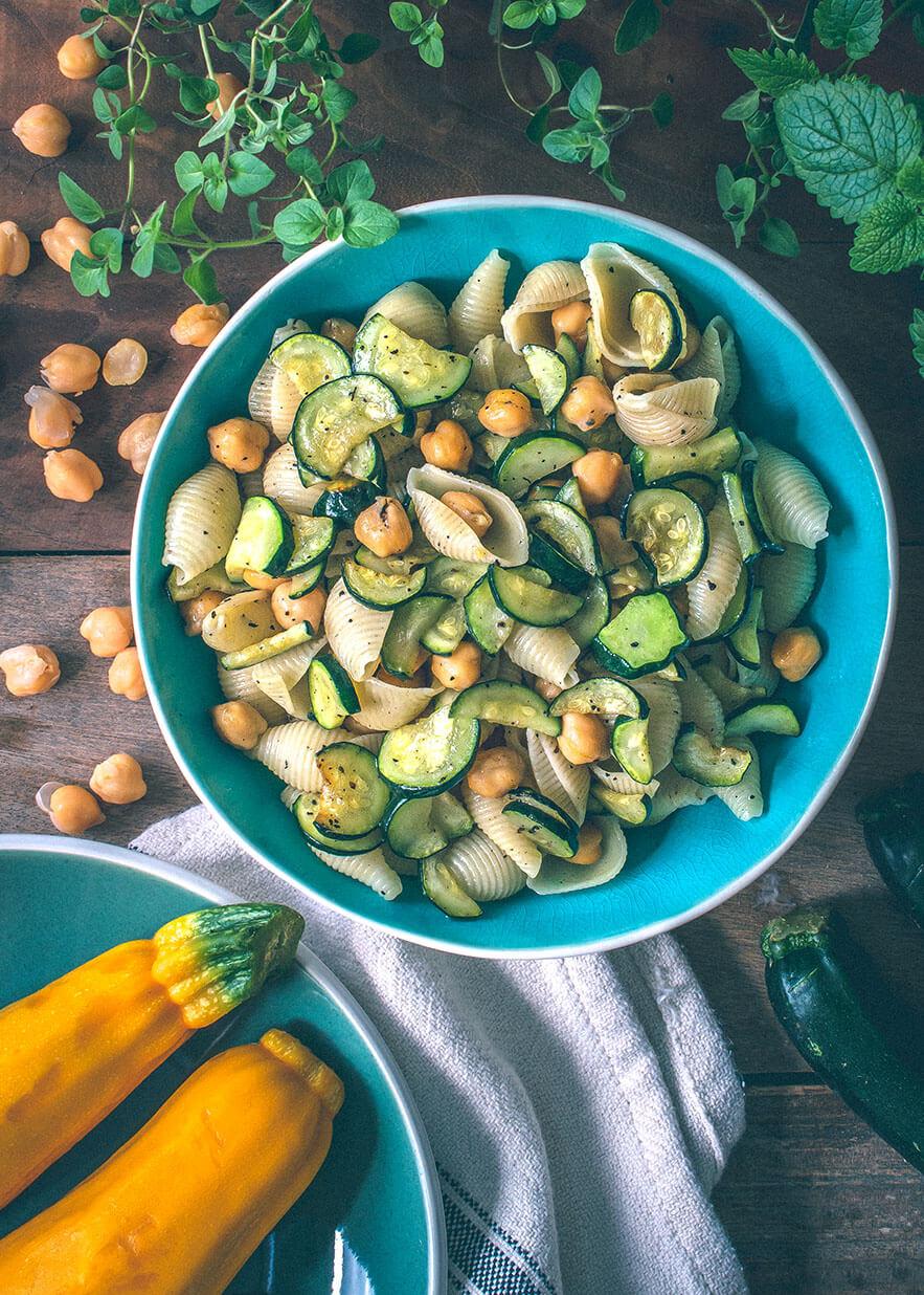 - Cook the pasta according to instructions and when ready drain it and place it in the pan with the vegetables. Stir gently to combine.