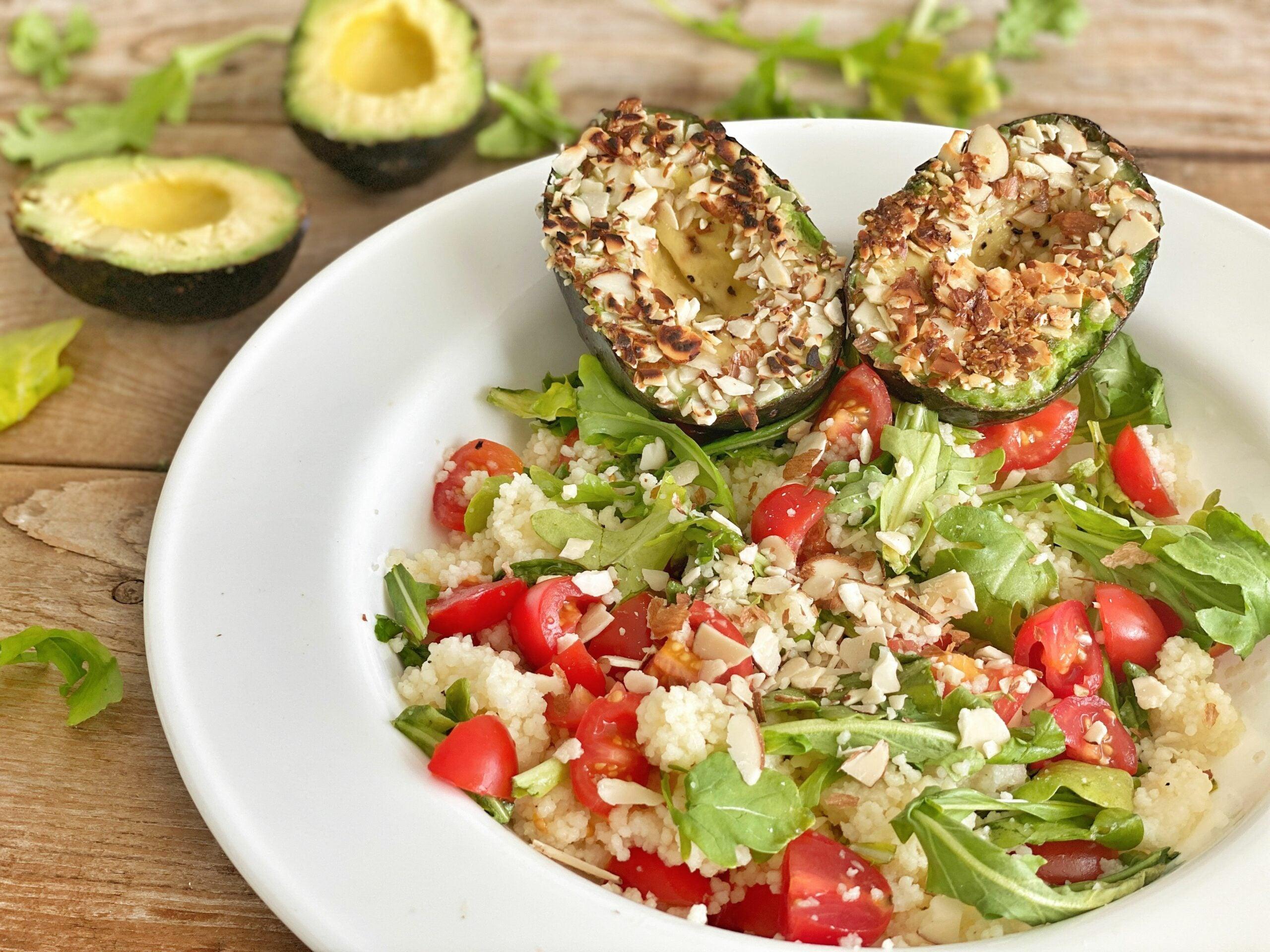 - Serve the almond-avocado halves together with the couscous salad and enjoy!