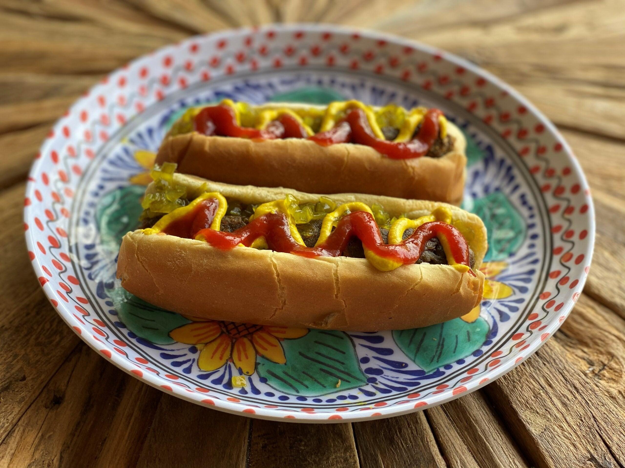 - Serve in a hot dog bun (I topped with mustard, ketchup & pickles)