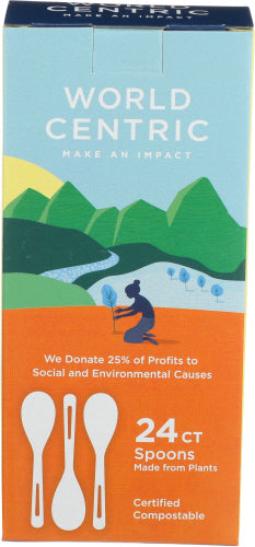 Crafted from 100% renewable corn starch, our World Centric Spoon is eco-friendly and biodegradable. This pack of 12 spoons provides a total of 288 utensils, perfect for hosting events or everyday use. Say goodbye to plastic and hello to a more sustainable option.